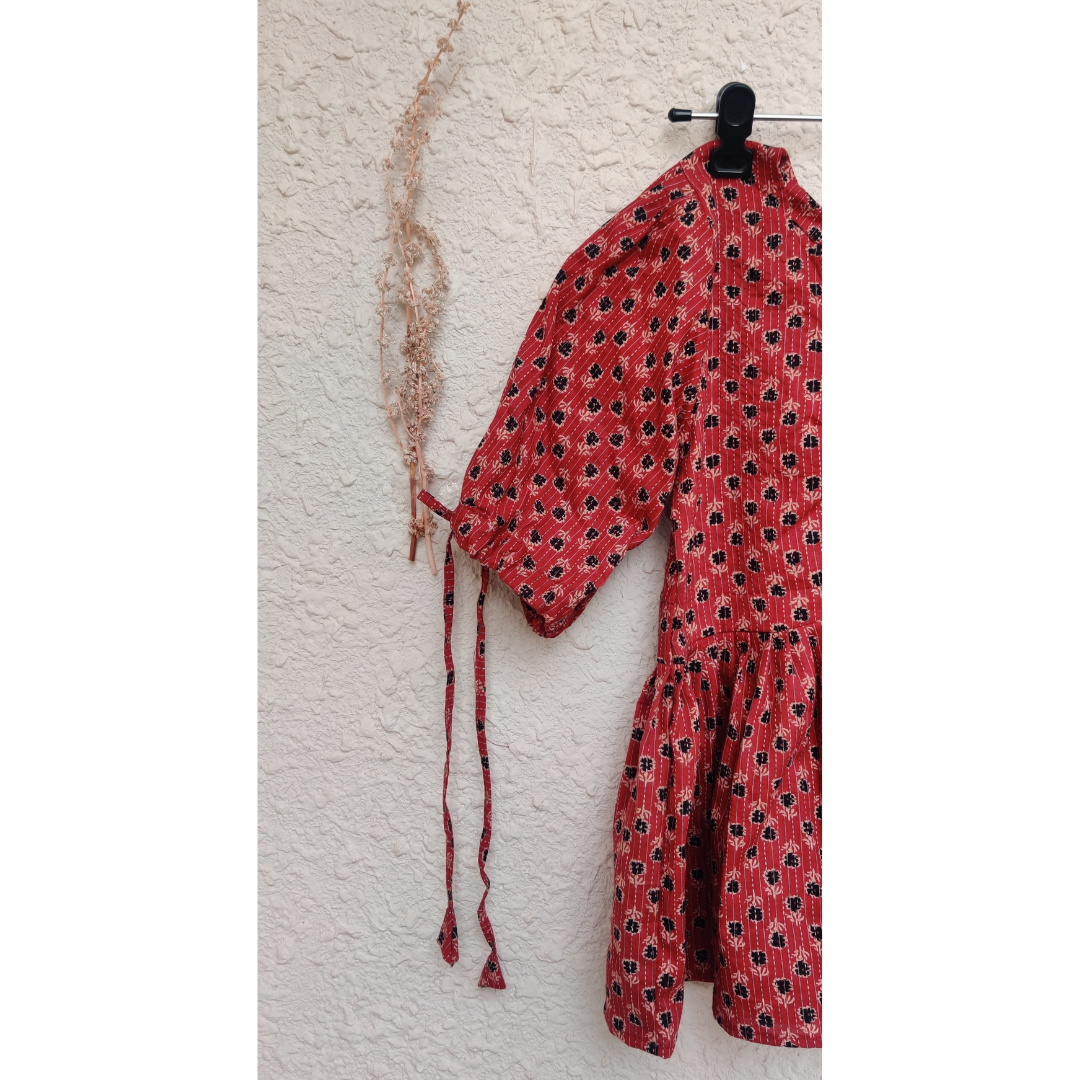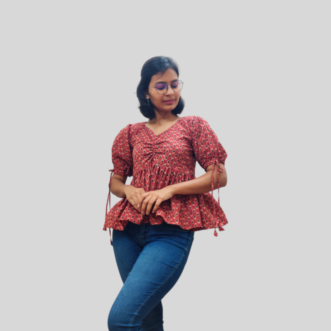 Introducing our Daisy Top. Made from kantha-printed cotton fabric, it has a sweetheart neckline, and a comfortable, flattering fit. With its billowing silhouette and short puff sleeves with dori, this tiny floral printed top captures the carefree spirit of spring. Whether you're working from home or meeting friends for coffee, this top will keep you feeling pretty and put together all day long.