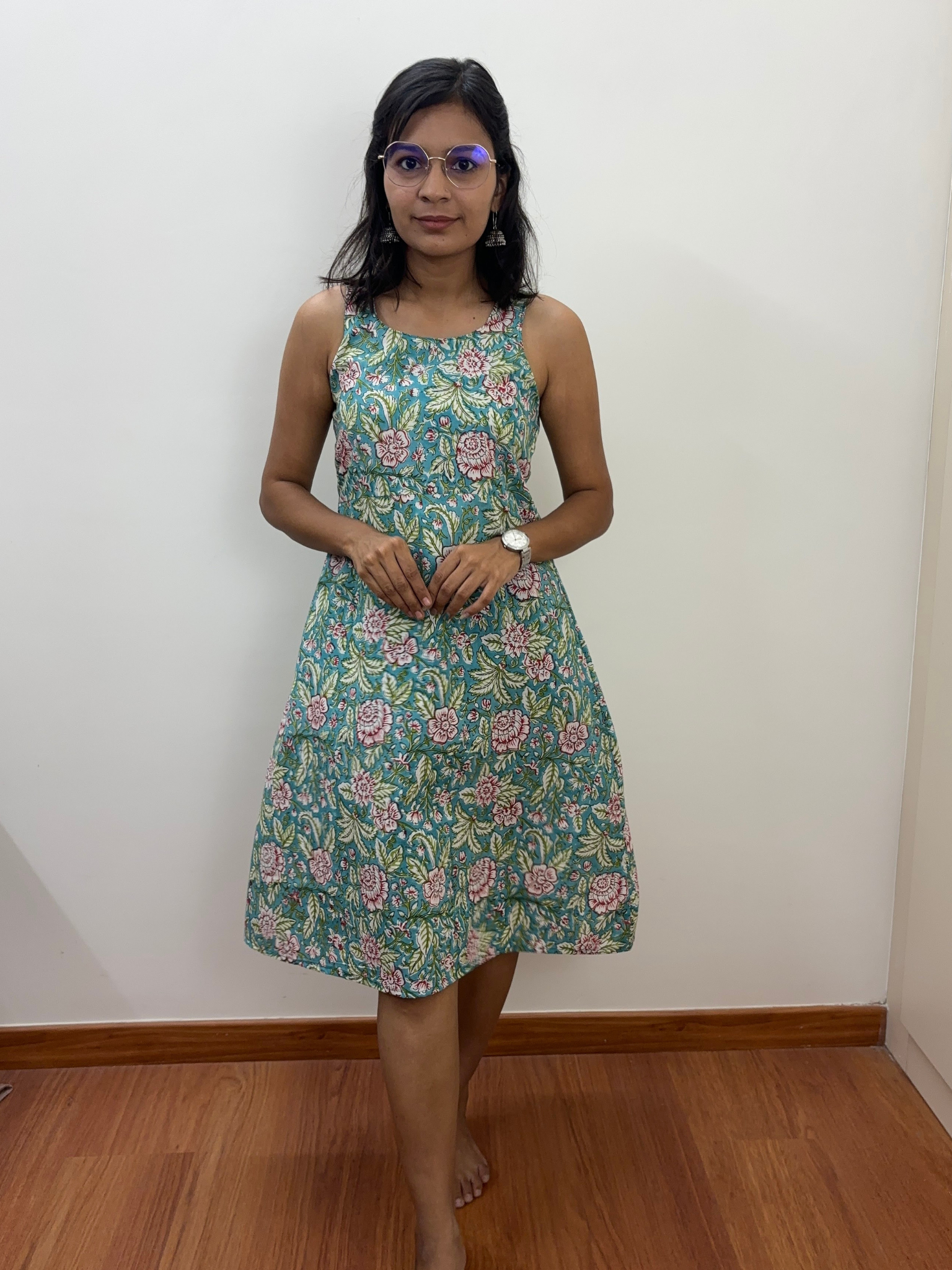 Meet our new Titli Summer Dress! It's made from comfy cotton, so you'll feel cool and stylish all day long. With its cute cotton printed design, it's perfect for any summer outing. You can wear it with sandals or fancy heels—it goes with everything! And guess what? It even has pockets! So, whether you're chilling at home or out partying, this dress has got you covered in comfort and style.